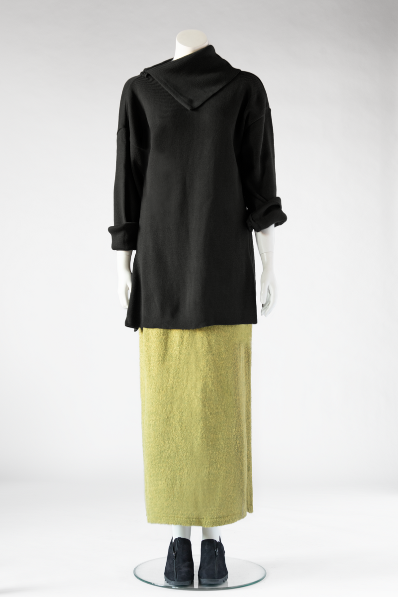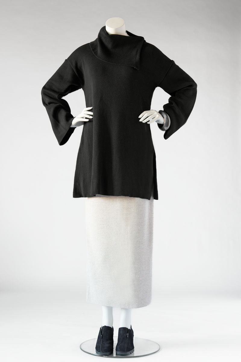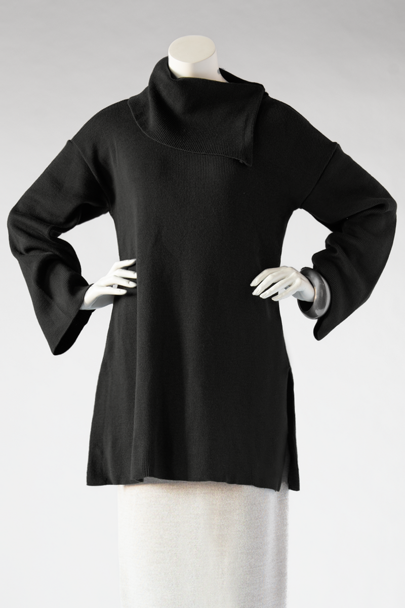 A cozy knit sweater with a flattering shape and luxurious asymmetric cowl. Accessories not included.