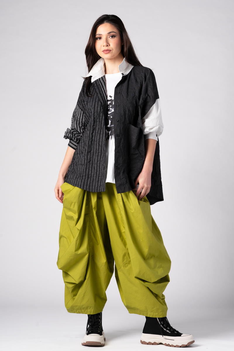 A versatile travel essential that works beautifully as both a jacket and a shirt. Asymmetrical black and white colour blocking (featuring 4 prints) adds sculptural dimension and effortless style.