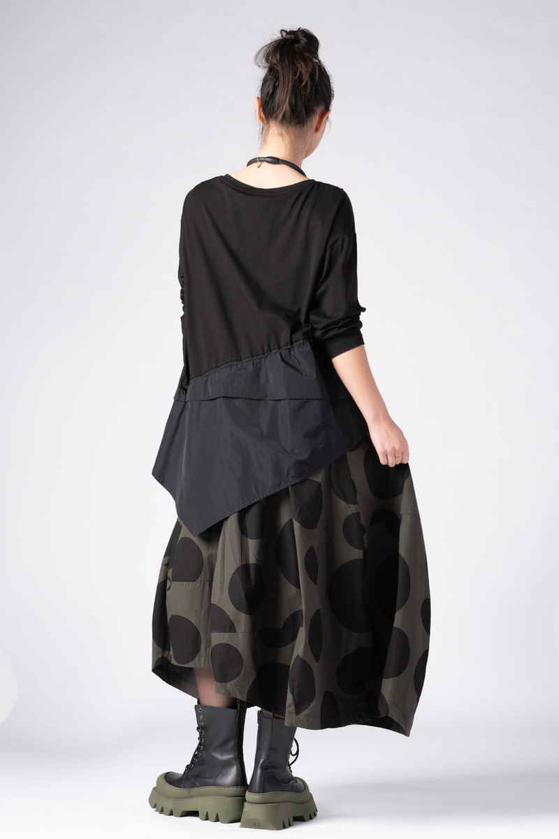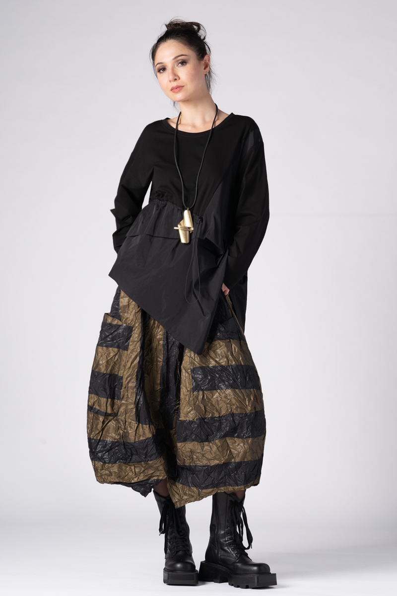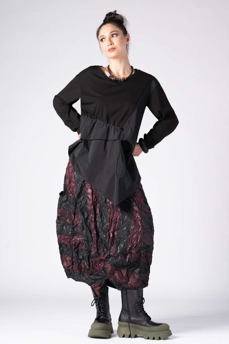 • Comfortable, versatile, and undeniably modern. Combines a soft jersey body with a crisp, sculptable panel in cutting-edge techno fabric that lets you play with the shape. Adjustable ruching string adds definition, while the asymmetrical hem gives it an artful edge. Accessories not included.