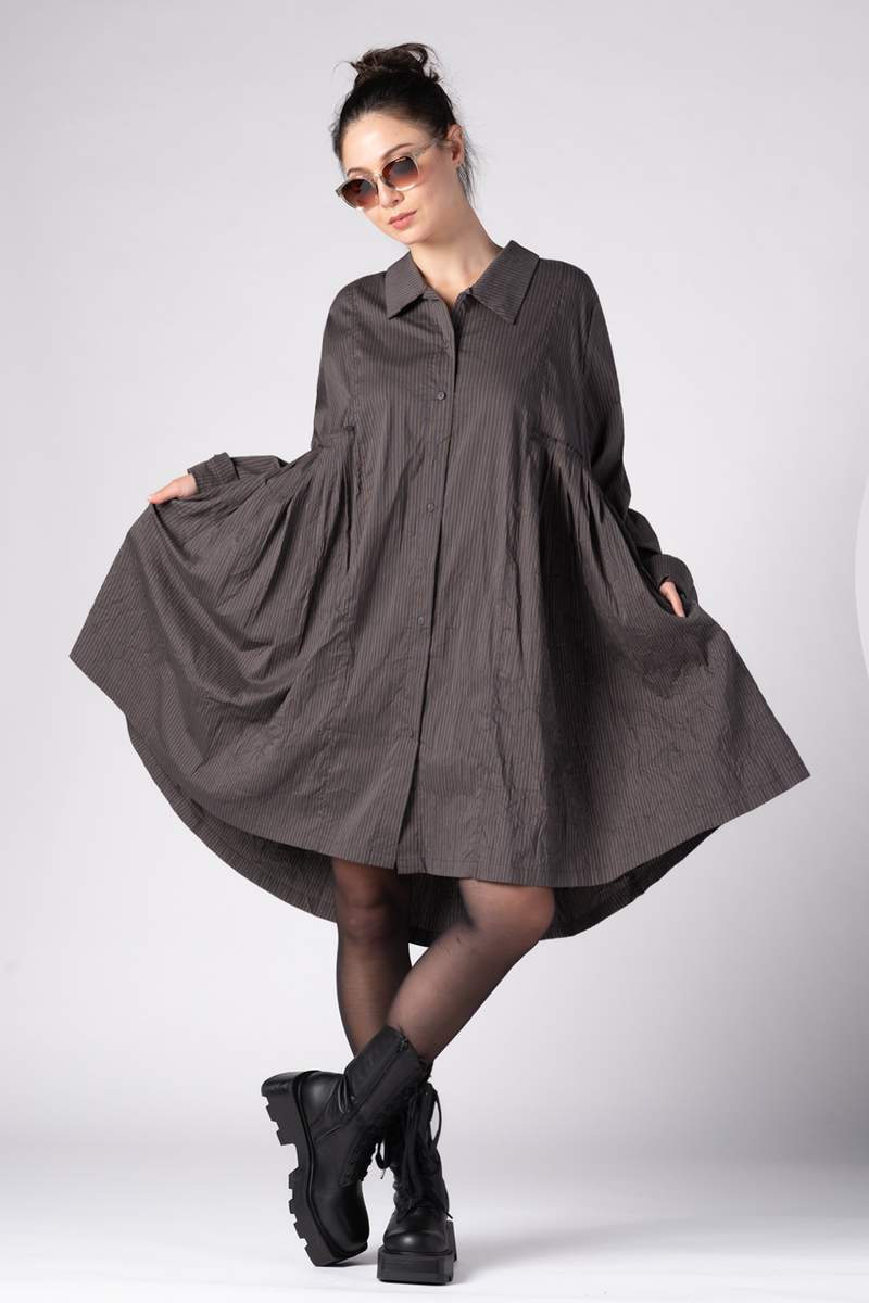 So much more than your average shirt dress! The cutting-edge techno fabric creates a look that’s both refined and relaxed. Perfect on its own or layered as a tunic over a skirt or pants.