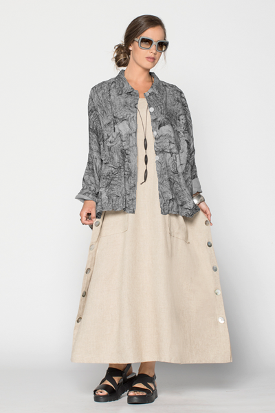 New York Jacket in Grey Net Roma Shown w/ Square Dress